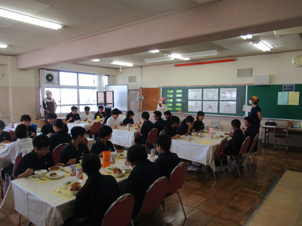 今日の給食は今が旬の秋刀魚、塩焼きでした。 今日の秋刀魚は頭と尻尾がついていないので、きれいに食べると背骨が一本残ります。秋刀魚の食べ方の動画とプリントを見て、きれいに食べることに挑戦しました。美しく、そしておいしくいただきました。